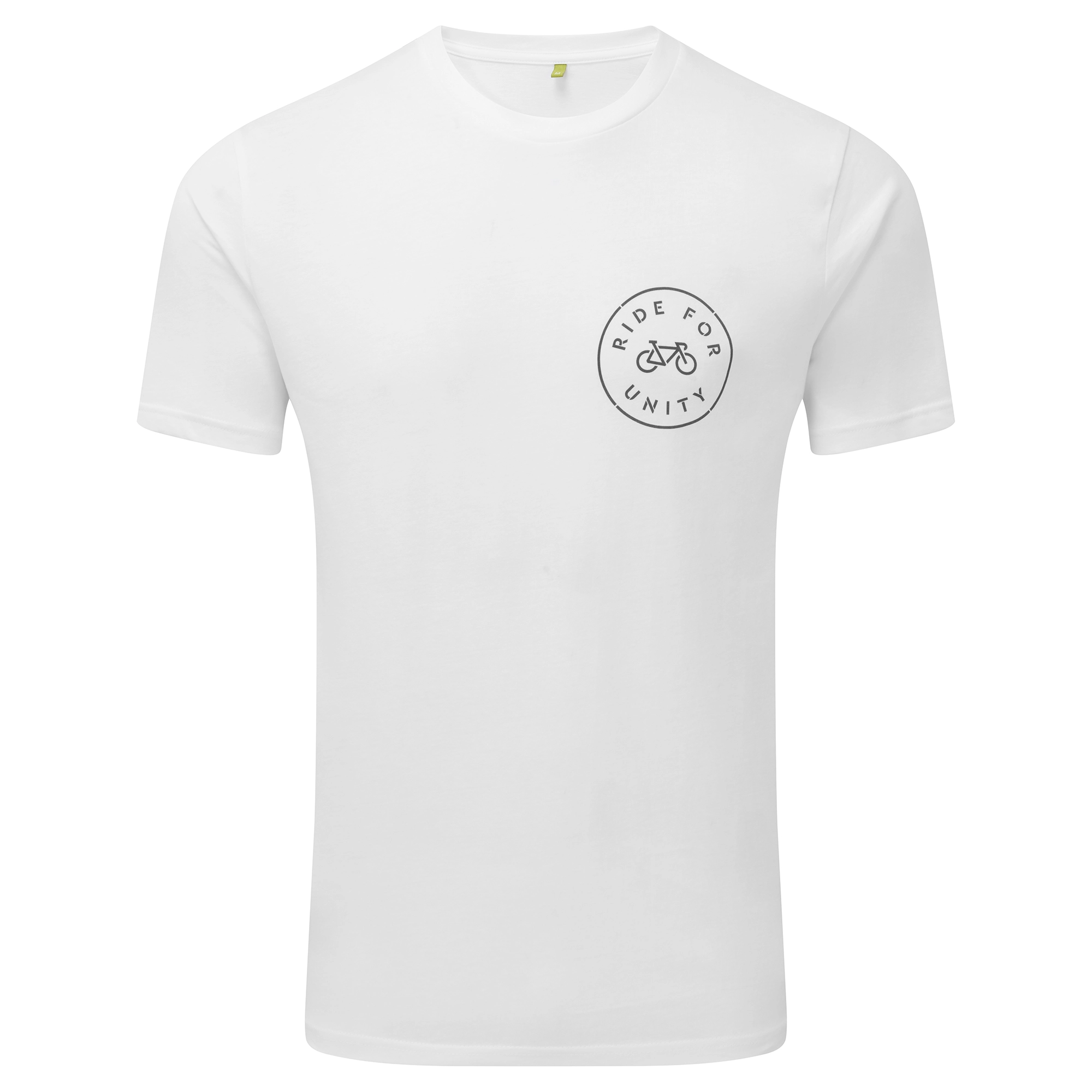 Diese T-Shirts wurden in Zusammenarbeit mit Ride For Unity entworfen und bestehen aus 100% Bio-Baumwolle. Sie sind ethisch anerkannt und werden in einer britischen Fabrik hergestellt, die mit erneuerbaren Energien betrieben wird.